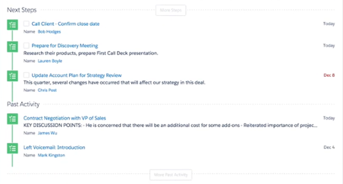 Podemos ver también las actividades a realizar y las completadas, por lo que en cualquier momento si volvemos a esa oportunidad es fácil identificar su estado.