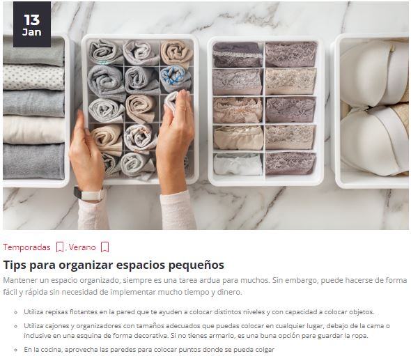 Por ejemplo, Aliss, la tienda por departamentos, en sus blogs comparte contenido acerca de cómo organizar los diferentes espacios, y publica regularmente el contenido en su blog para mantener a los lectores interesados y comprometidos. Incluye una amplia gama de temas relacionados con los artículos que manejan y las diferentes maneras de combinarlos.